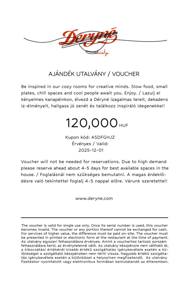 Give hedonism, unforgettable experiences, and unparalleled club-style care with Déryné gift vouchers! Your guests will be pampered with a glass of free champagne and seated on the comfiest sofas in Déryné’s cozy rooms. Have fun!